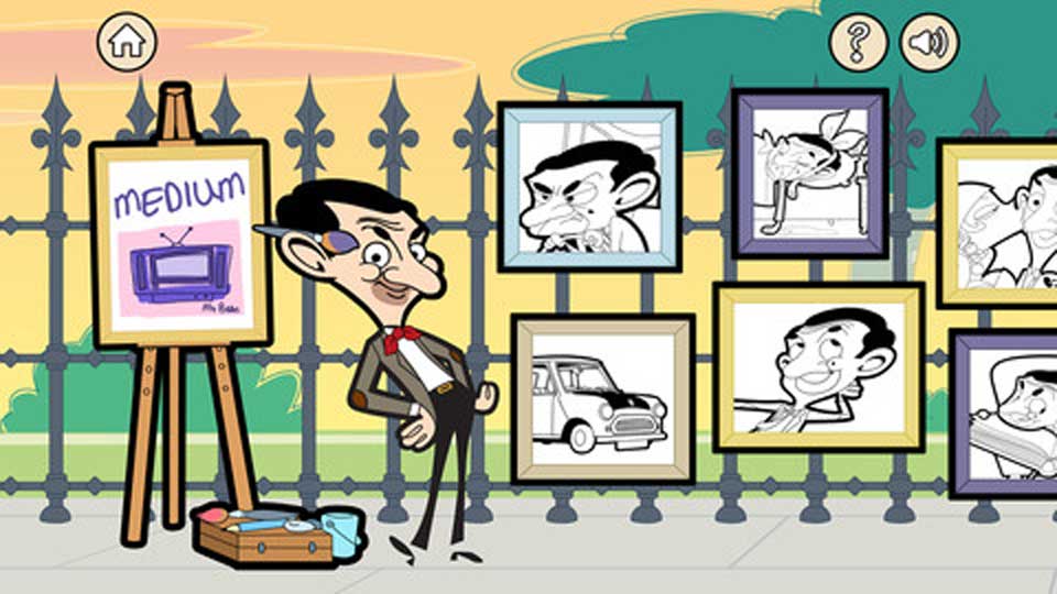 As with Mr Bean Slider Puzzle, Colour & Paint offers three difficulty levels – easy, medium and hard – each of which contains 12 images for you to colour in and paint. Once you’ve selected your image you’re given a palette of 37 colours and the option to choose between three different brushes. The brushes do give surprisingly different results so make sure you choose the right one so you stay within the lines (something we failed to do on several occasions!). There’s also an eraser to allow you to rub out mistakes and you can undo a chunk of work with the undo button if you like.
