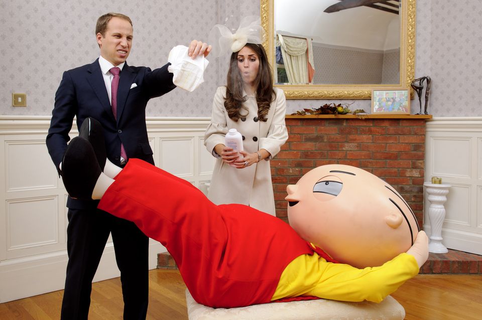 Stewie Griffin is at it again! Not content with gate-crashing the royal Christening portrait, he's now settling in to life with Kate and Wills.