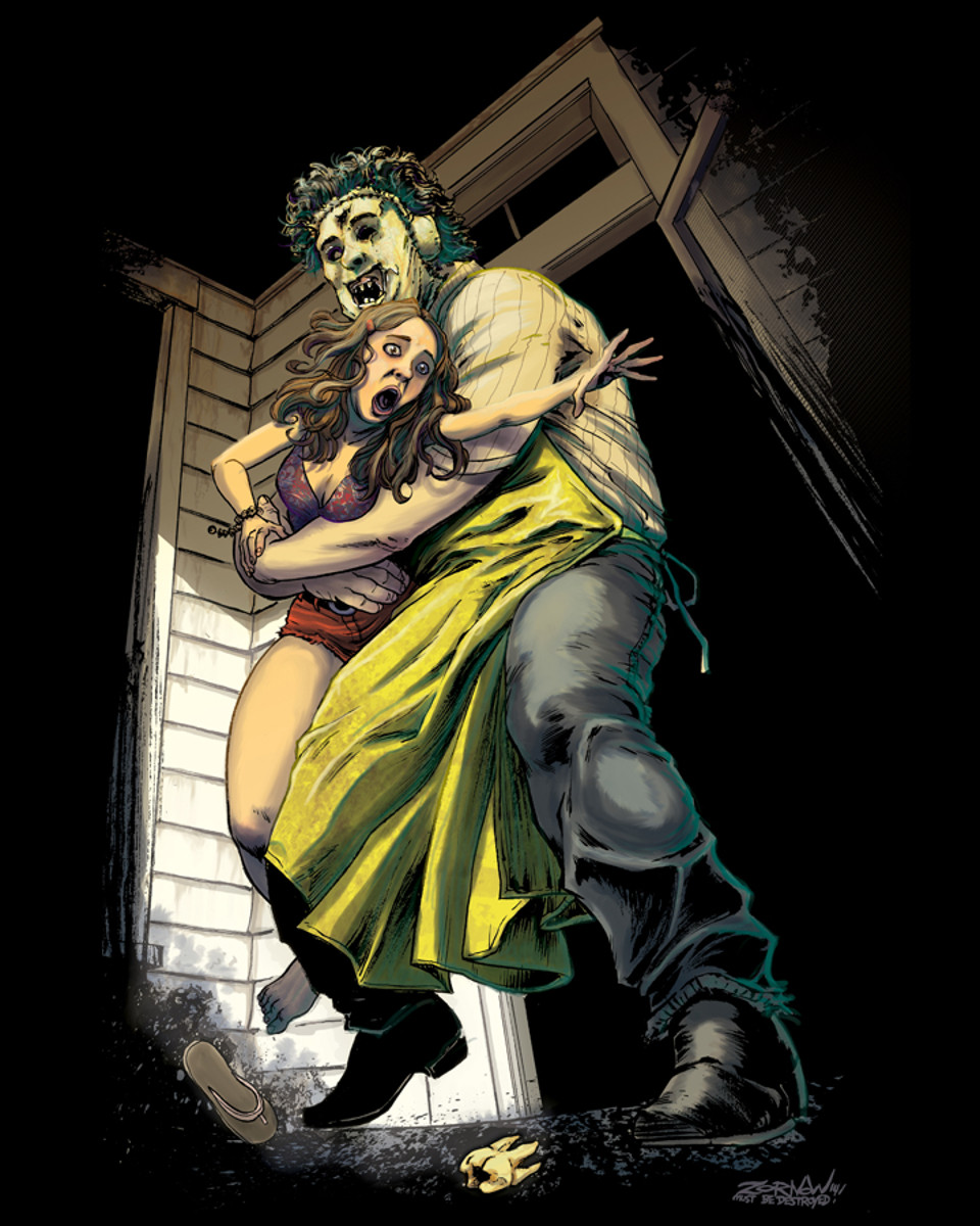 The horror shirt company commissioned five renowned artists to pay homage to Tobe Hooper’s 1974 horror classic. Godmachine, Jason Edmiston, Justin Osbourn, Abrar Ajmal and Jeff Zornow each offer a unique take on The Texas Chainsaw Massacre's iconic madman, Leatherface.