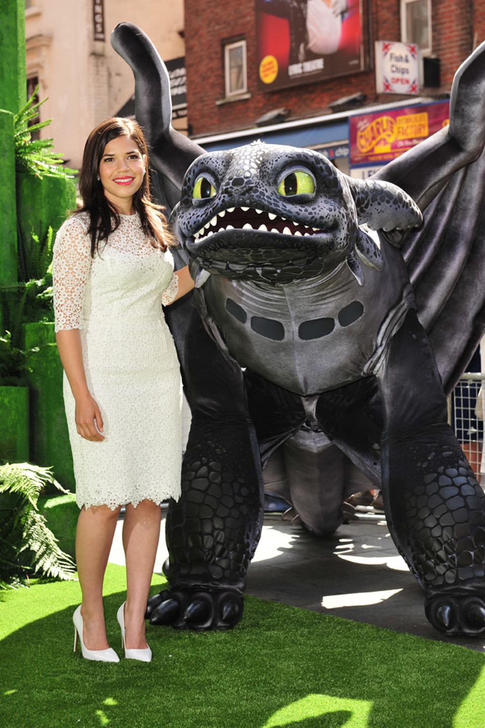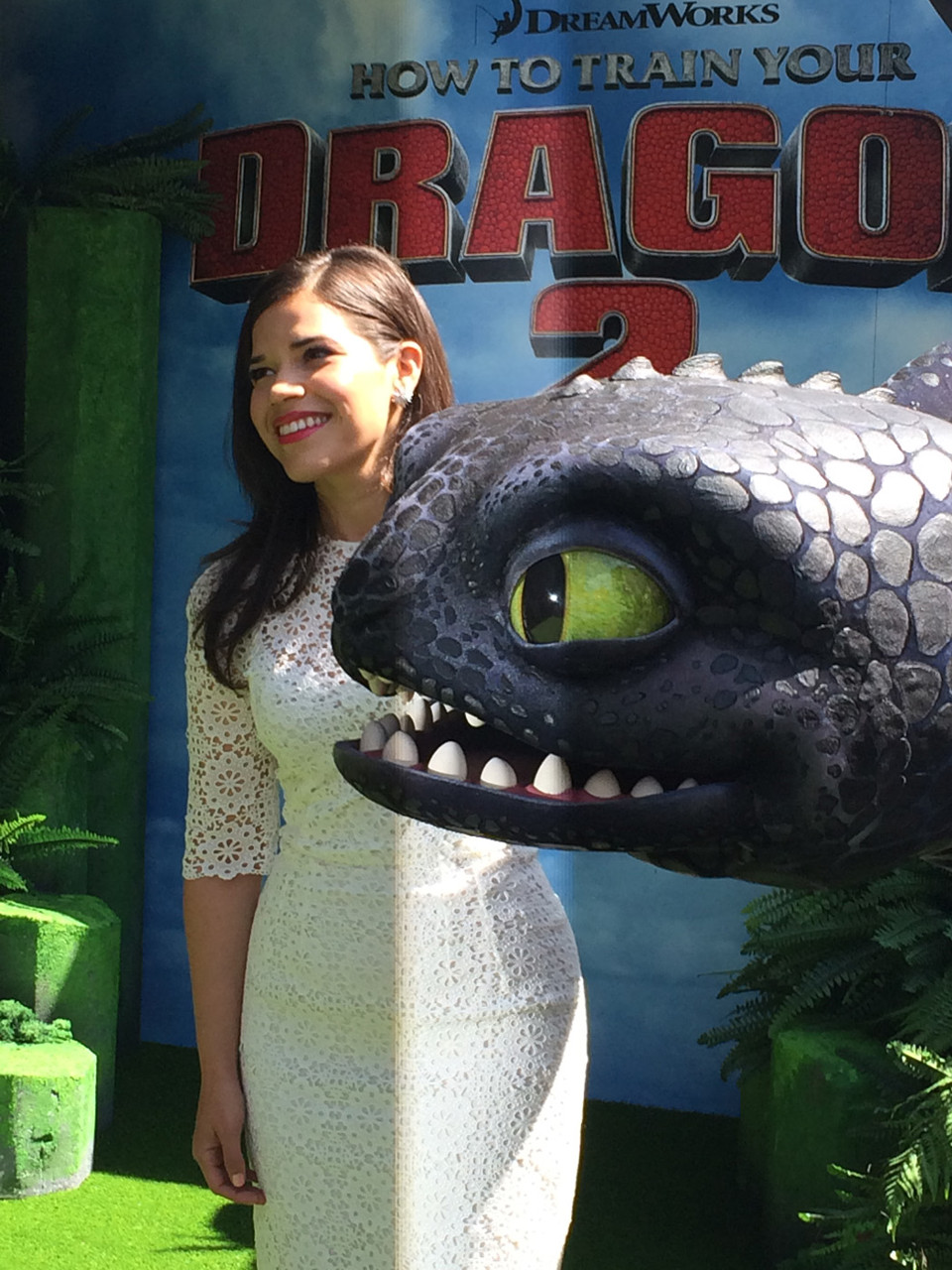 Star America Ferrara (Ugly Betty) attended the screening with director Dean DeBlois and author of the book series Cressida Cowell. They were joined by dragon Toothless for the red carpet event where they all posed together for photos before participating in a Q&A.