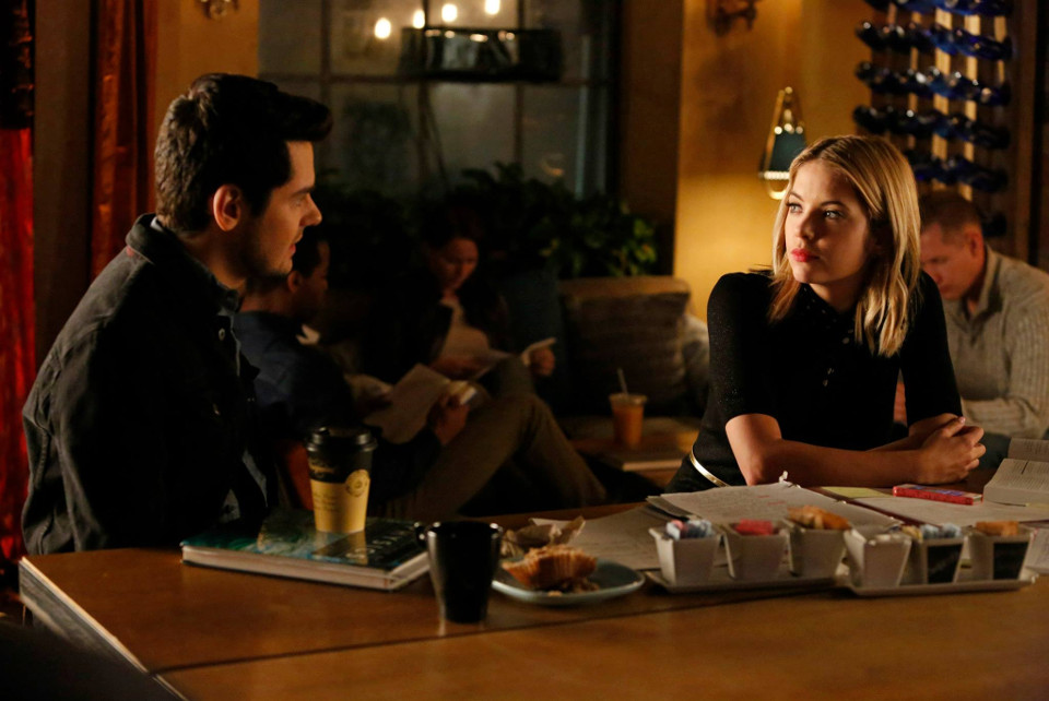 The latest episode saw Aria (Lucy Hale), Spencer (Troian Bellisario), Hanna (Ashley Benson) and Emily (Shay Mitchell) return to Rosewood High and they found fitting back in wasn't going to be easy. Aria struggled to deal with her guilt over Shana's (Aeriel Miranda) death and confessed all to Ezra (Ian Harding), Alison (Sasha Pieterse) had a run-in with Peter Hastings (Nolan North) and Hanna tired to step out from under Alison's shadow.