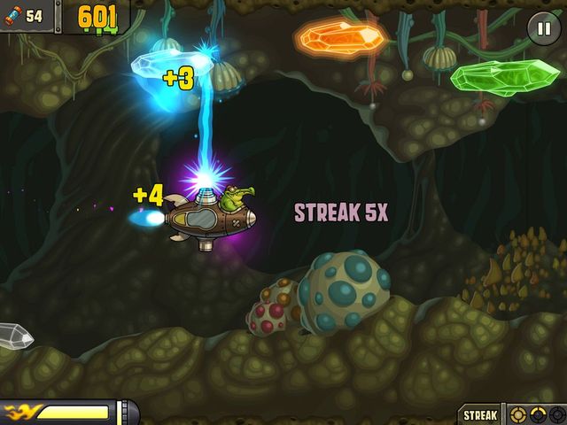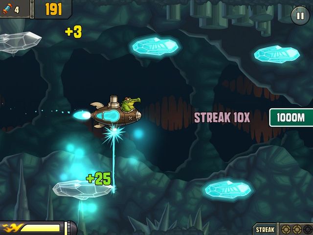Along the way the game also features power-ups which must be tapped on in order to collect them. If you get eaten you can spend a Jolt power-up in order to escape and continue your run. These can also be bought via in-app purchases for a small fee. The game also features the ability to remove adverts for a small fee.