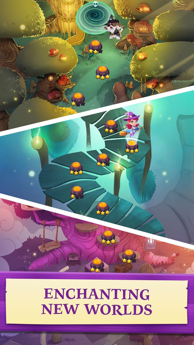 Available to download for free from the Apple App Store, Google Play, Amazon Appstore and Facebook, Bubble Witch 3 Saga rejoins key characters Stella, the fearless and powerful witch with attitude, and Wilbur, the lazy fat cat empowered with dark magic. The new game sees them embark on a spellbinding adventure as they battle against each other to take control of the enchanted lands of Witch Country.