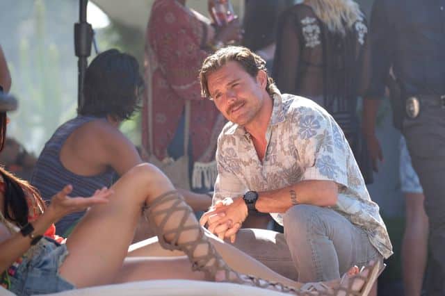 The episode began with a body being found on a beach. Although on closer inspection the body was alive, it was a naked Riggs who had been out partying with himself.