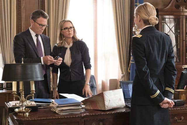 Elsewhere in the episode, Russell Jackson (Zeljko Ivanek) was concerned that President Dalton (Keith Carradine) would miss out on the ballots in Minnesota and Ohio. He all but forced Elizabeth to go to Ohio and do an interview at the NFL game where she covertly campaigned for Dalton.