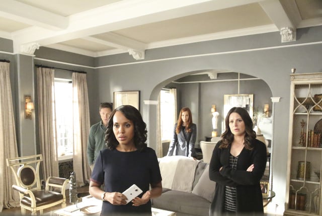 As Olivia, Jake (Scott Foley) and Fitz clashed over the best method of action against Peus, Olivia pondered what life would have been like if she'd said ‘no' to rigging the election in Fitz' favour. In her fantasy she and Fitz married following the failure of his Presidential campaign.