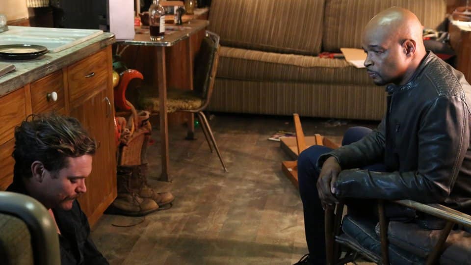 At his trailer, Riggs entertained himself shooting beer bottles on the roof. The stray dog he found last episode was now living with him and helped itself to food out of his fridge. Checking the mail he found a cheque for $147,000 for the sale of his old home.