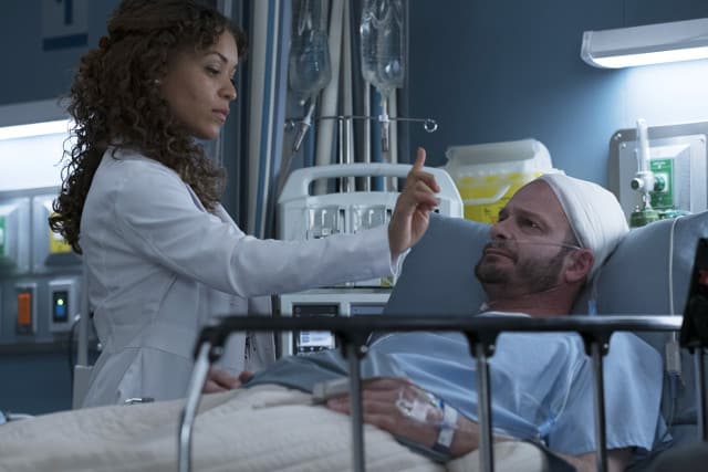Elsewhere Dr. Kalu (Chuku Modu) got his job back after threatening to sue the hospital for racism and Jessica (Beau Garrett) broke up with Dr. Melendez (Nicholas Gonzalez) telling him she couldn't stand in the way of his desire to be a father.