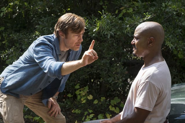 Meanwhile Aaron (Ross Marquand) and Enid (Katelyn Nacon) tried to convince Oceanside to join their fight against the Saviors. When they refused Enid returned to Hilltop and Aaron stayed behind to try and convince them to change their minds.