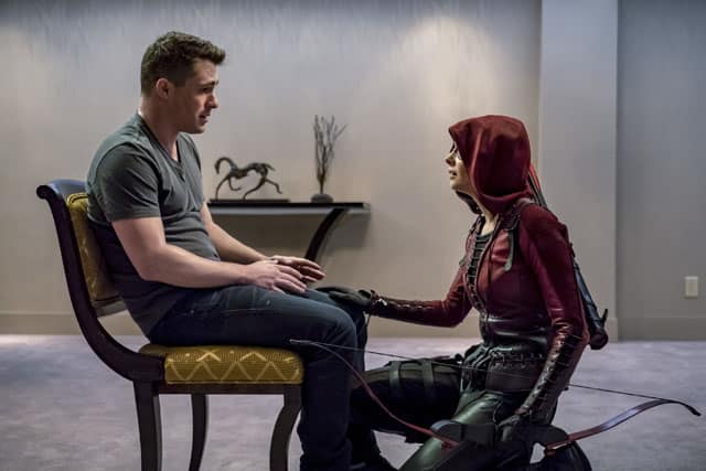 Quentin (Paul Blackthorne) took Black Siren (Katie Cassidy) to his cabin to allow her to heal but didn't tell anyone. Thea (Willa Holland) tracked him and discovered what he was doing.