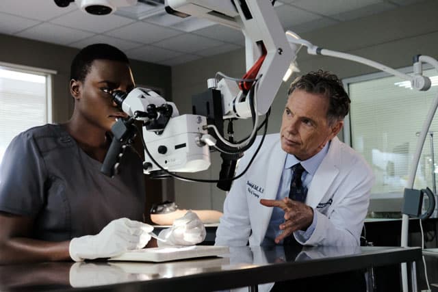 Elsewhere in the episode Dr. Bell was desperate to show off some new cutting-edge operating technology and insisted on doing a demonstration, much to the horror of everyone else. Realising he couldn't do it, he blackmailed Dr. Mina Okafor (Shaunette Renée Wilson) threatening to stop her from getting her visa unless she assisted him.