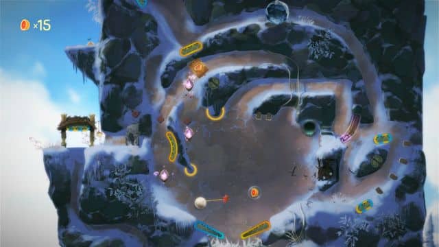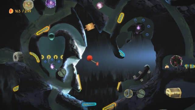 There is also a strong Metroidvania aspect of Yoku's Island Express. The levels are available to move back and forth in, but when you're in a particular area you'll find yourself doing quite a bit of backtracking around the place to figure out the puzzles. Many of the previously mentioned pinball flippers are unlockables through a currency of found fruit. The flippers themselves open up new paths for progression. As you find fruit to unlock these, you'll notice that your beetle has a wallet that can only hold so much at a time. This is upgradable, of course. But it causes you to spend, then backtrack to get enough again to progress. It's not too much of a hassle, and the levels are designed in an easy going way so you only get gently lost, but it still can be a little grumble to find yourself having to go back. The good thing about losing (I use the term very loosely!) yourself in the level is that Yoku's Island Express is keen on rewarding for exploration.