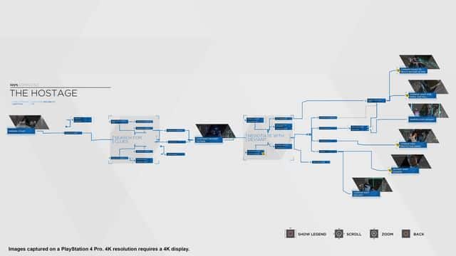 Certain choices can unlock extra branches in the story, add new dialogue options or change your relationship with other characters. It's not necessary to do everything available to you in order to progress. Sometimes you must make a choice from multiple options about what a character will do. At the end of each chapter the game presents you with a flowchart showing the path you took and all the branching options that you missed. You can see how your choices compared to the entire community of players or just your friends.