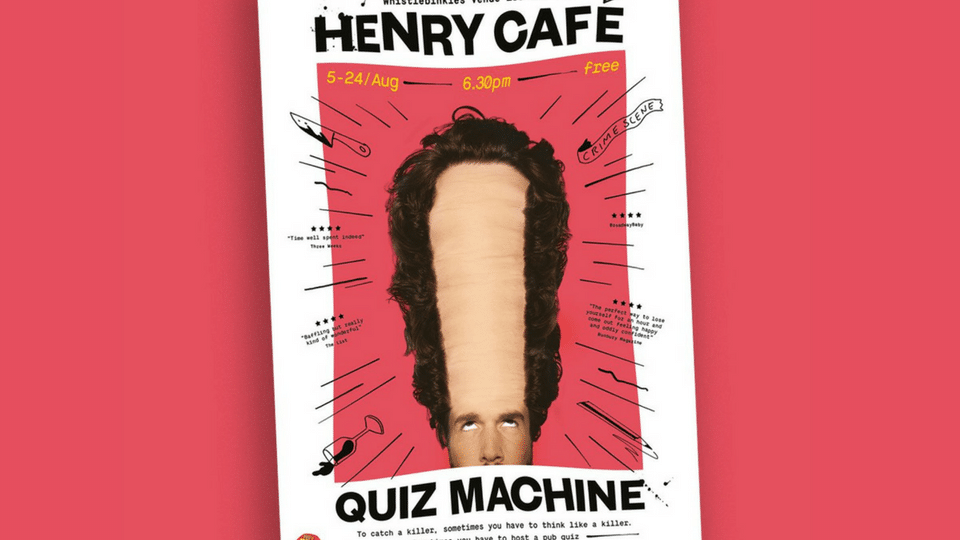 Title Henry Café: Quiz Machine Time 6:30pm Venue Whistlebinkies (Venue 158) Dates 5-24 August. Tickets Free https://tickets.edfringe.com/whats-on/henry-cafe-quiz-machine