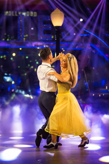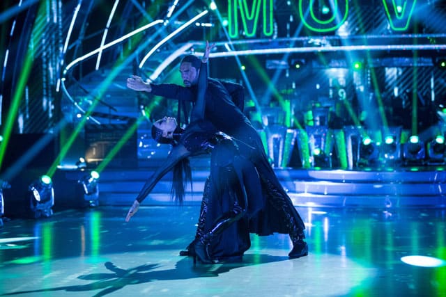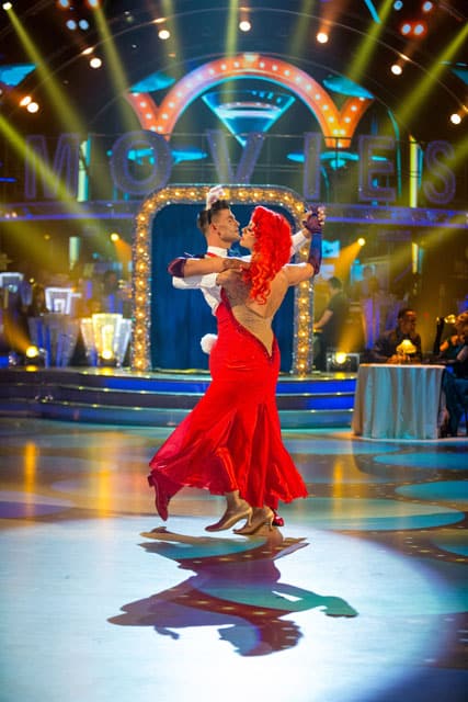 The dance: Dressed in a slinky black leather outfit, Faye definitely brought out her feisty side in this routine. It was a super-speedy Quickstep, with her and Giovanni sprinting around the floor, and consequently she lost her frame a little bit at times. However, they had good co-ordination in the Charleston section and I liked the little references to the film in the choreography as well. It was a performance full of content which showed a different side of Faye and that she can handle anything Strictly throws at her.