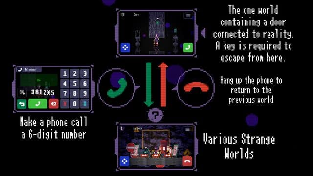 Strange Telephone has been released on PC and is the followup to its critically acclaimed smart phone release. In Strange Telephone players Travel around a strange pixel world, automatically generated by a 6-digit phone number. The protagonist Jill is trapped in a dark world with a large door floating before her. She is aided by Graham, who takes on the form of a telephone. Making phone calls with Graham creates various worlds that can be explored. In each of these worlds are items to be found, including the key that will lead to her escape. The game contains multiple endings to find.