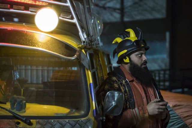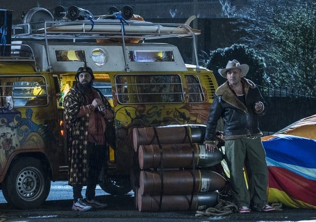 Credit: Gareth Gatrell / Tiger Aspect Productions Limited 2018 – Guz Khan (playing Cheese) and Billy Zane (playing Joker Jones)