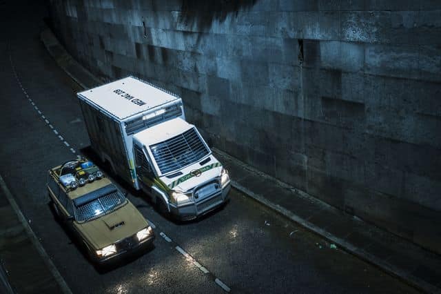The episode ended with a shot of Team Donohue and MED VAC 239 driving towards the wall that surrounds London.