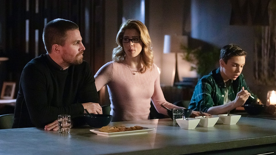 Meanwhile William (Jack Moore) returned from witness protection and revealed to Felicity (Emily Bett Rickards) that he'd been expelled from his school.