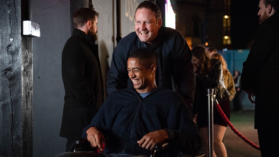 Jamie took in some fresh air and was collected by Debbie (Ashley Jensen) for physio. This time he pushed himself, especially after seeing the new patient being prepared to return home. He managed to push his legs slightly, showing a huge improvement.