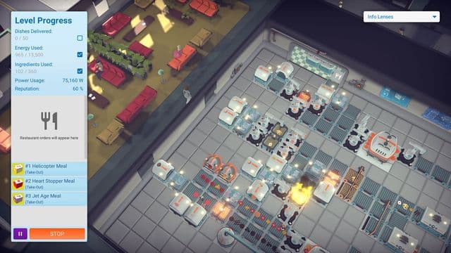 In Automachef players are tasked with creating a series of fully-automated kitchens that can produce a variety of dishes, each is a puzzle where you must overcome spatial, energy and design challenges. Taking care to monitor energy and ingredient consumption, fire and infestation risks. Players must plan, position and program numerous machines that can slice, cook, assemble and serve delicious meals.