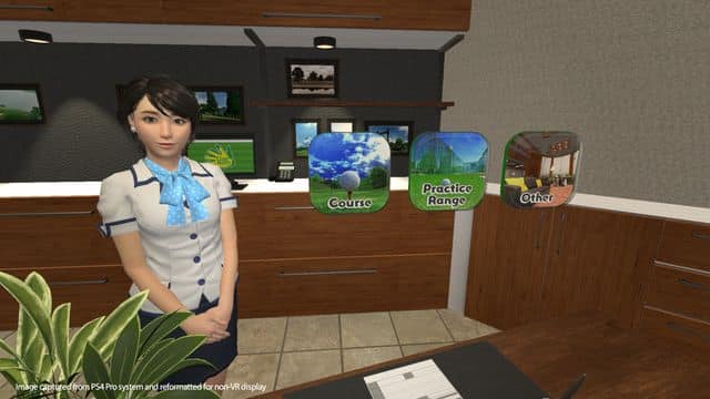 Bear with my explanation because golf is not my area of expertise and VR is different for each player. Upon starting the game you are given a few choices. Firstly, you pick whether you are seated or standing and whether you are using a DualShock or single Move controller, you then pick your height and preferred hand. My normal set-up for PSVR is in a small room and seated. Knowing I was playing a golf game, I moved to a bigger room. Playing seated isn't a great option as you can't get a solid swing and it's quite uncomfortable. As for controller method, if you have a Move controller, use it. The DualShock is fine but the Move controller feels a little more natural. After you've set up and gone through a short practice session, you then move to the golf club. From here, you select what you are going to do but at first can only do a 3 hole course. You are introduced to your caddy and arrive at the first hole.