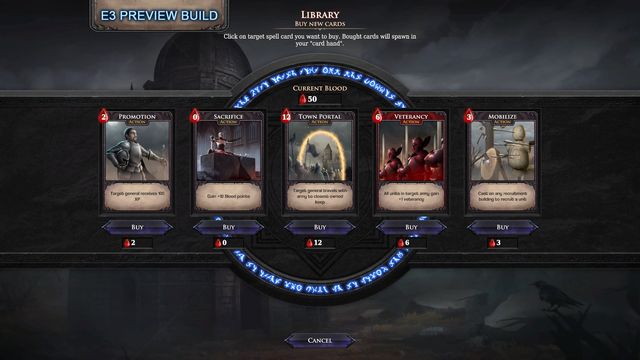 Command one of three unique vampire clans with distinctive units, powers, gameplay mechanics and characters, making strategic manoeuvres in “Kingdom” mode before switching over to “Combat” mode to take on your foes in tense, closely fought battles. Original card game elements enhance the gameplay and provide a refreshing take on the genre. Each clan and vampire lord have access to their own set of cards, which can be combined to powerful effect.