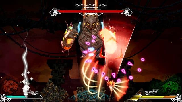 Throughout your missions you also come up against large boss enemies. These are easily the highlight of the game and really test your skills. Overcoming them requires learning their attack patterns and different phases. Taking them down quickly requires you to have mastered the Trinity System so you can top up your shields and super attack at the right times as well as switching to Crush for the extra damage.