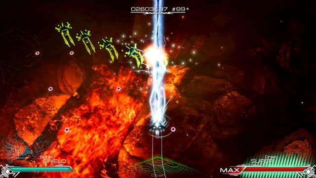The basic gameplay is simple enough with the left-stick moving your ship and the face buttons firing your weapons. Enemies attack in waves and have distinct movement patterns and formations. The game flies you along a linear path through each level while you dodge the enemy bullets and return fire with your weapons.
