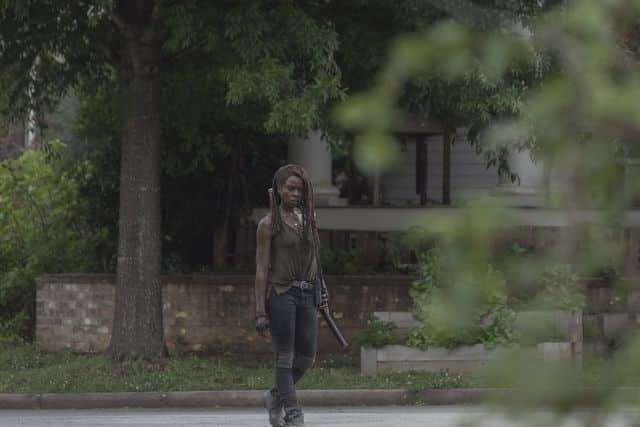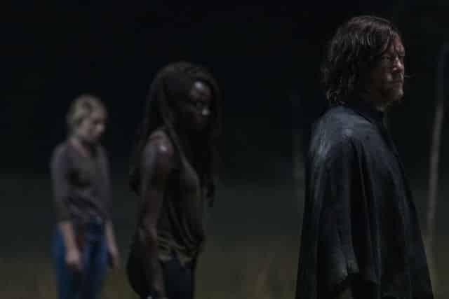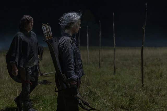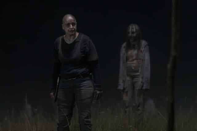 At the end of the episode, we saw the final scene of the premier from Alpha's perspective as she left the woods and saw Carol (Melissa McBride) stood on the cliff above.