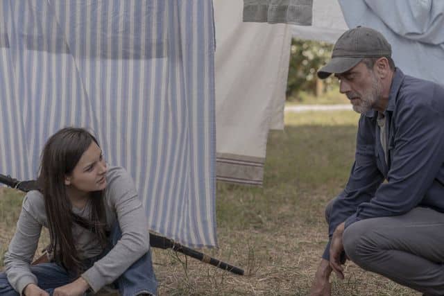 Elsewhere in the episode, Aaron (Ross Marquand) led a group south the reduce the approaching walkers. Gabriel (Seth Gilliam) sent Negan (Jeffrey Dean Morgan) along with them to help, despite the protests from Aaron. Negan is still a capable fighter and despite arguing with Aaron, he looked after him when he became temporarily blinded by hogweed.