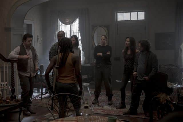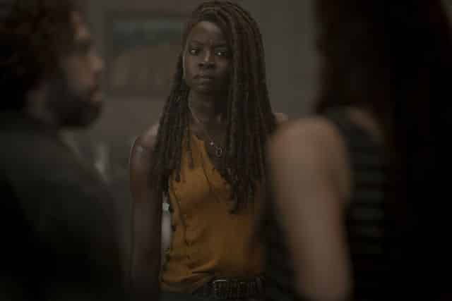 After a council meeting, Michonne (Danai Gurira), led Daryl (Norman Reedus), Carol and some of the others to the border to see what Alpha had to say. Alpha turned up and demanded punishment for straying into her lands. The community got off lightly by surrendering land. Carol had other ideas and tried to shoot Alpha but was stopped by Daryl and Michonne.