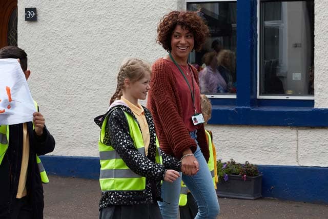 Jess, played by Cush Jumbo, used to be a bit of an outsider, someone who could never really settle down. But when she met Steve 6 years ago, she quickly moved to Kirkdarroch and made a home with him. She helps him look after his two sons from his previous marriage with whom he shares custody with his ex. Steve, played by Matthew McNulty, was born and raised in Kirkdarroch. A Police Sergeant, he’s previously not had to deal with much crime in the sleepy village and their happy life together is only marred by their struggle to have a child of their own…