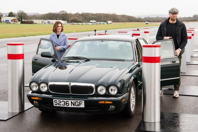 Next up we see Emila and Lawrence Fox taking their turn in the reasonably priced car. Emilia is very cautious and ends up with the slowest speed on the leader board. Lawrence, however, absolutely floors it for the whole lap and puts in an impressive time given the wet conditions.