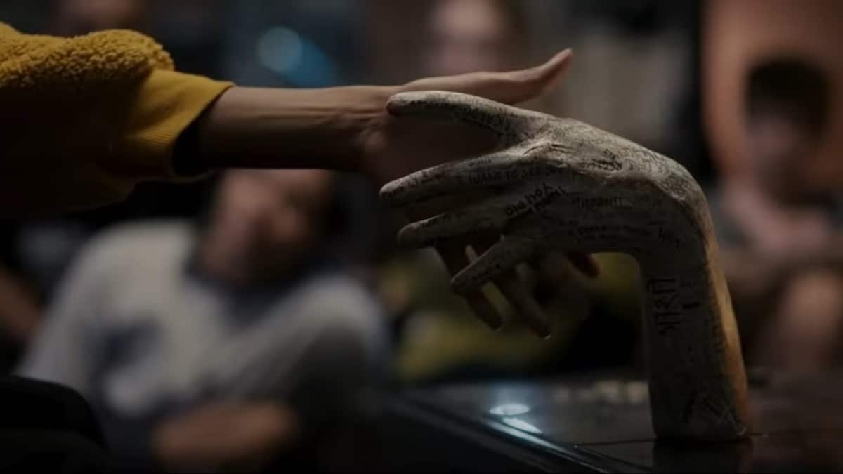 The premise is simple – a group of teenagers have gained possession of a mysterious severed hand. Rumoured to be the embalmed and coated appendage of a psychic who had their hand chopped off, the ‘game’ goes that if you hold it and allow it to absorb you, you can channel a looming dead spirit. So naturally this has become somewhat of an underground sensation for a group of teenagers who spend their nights in basements, partaking in underage drinking and filming these spirit possessions on their phones looking for a quick viral social media hit. But there are rules to this game… and when Mia (Sophie Wilde) allows her best friend’s younger brother to try it out without adhering to them, something goes horribly wrong.