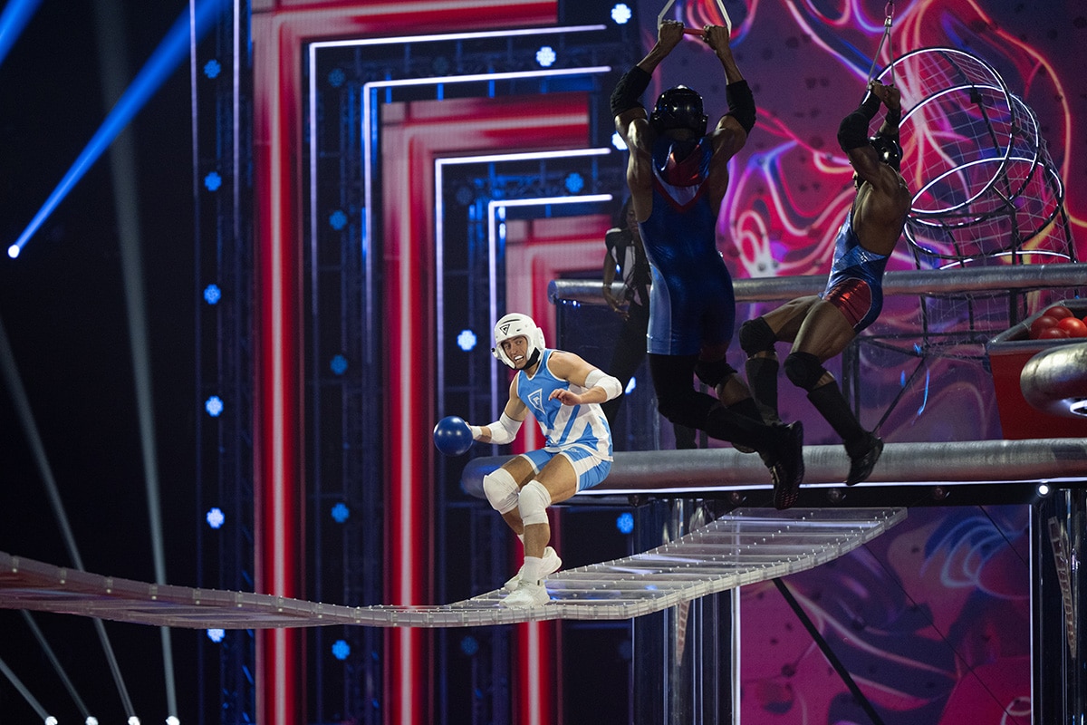 This weekend's show is the penultimate episode in the series and the contenders will be taking on games including Everest, Hang Tough, Collision and The Wall, as well as the dreaded Eliminator. By the episode's end we'll know who is going to battle against Tyler and Naomi in the final.